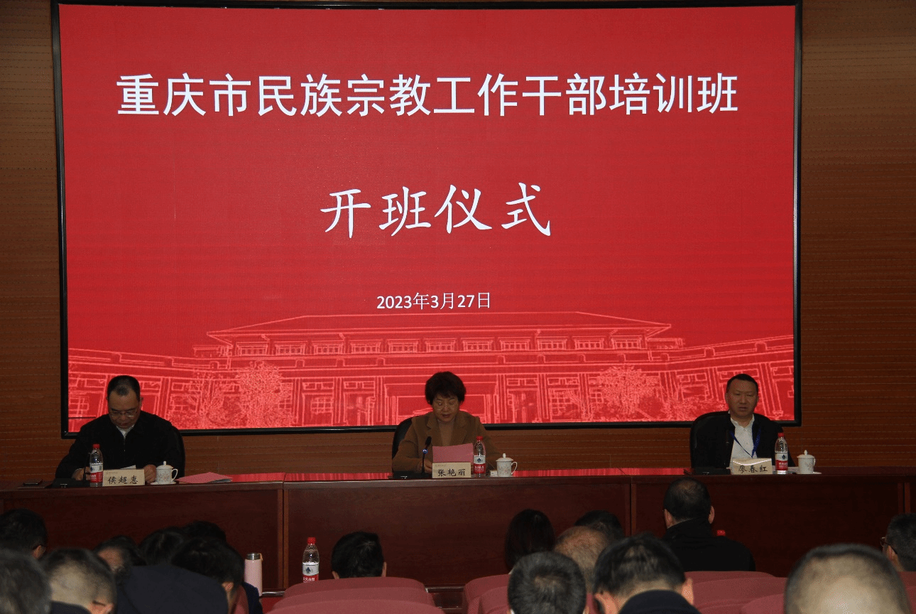 3月27日上午,重庆市民族宗教工作干部培训班在我校海淀校区文华楼一层报告厅举行开班仪式。学校党委常委、总会计师张艳丽, 重庆市民族宗教事务委员会党组成员、副主任廖春红出席开班仪式并讲话。