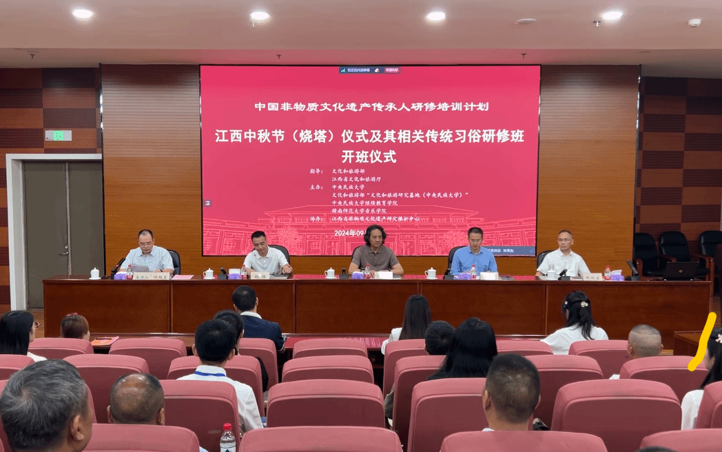 9月6日,“中国非物质文化遗产传承人研修培训计划——江西中秋节(烧塔)仪式及其相关传统习俗研修班” 开班仪式在我校举办。中央民族大学党委常委、副校长王雄军,江西省非物质文化遗产研究保护中心副主任魏强出席开班仪式并讲话。文化和旅游部非物质文化遗产司原副司长、一级巡视员马盛德,文化和旅游部“文化和旅游研究基地(中央民族大学)”主任、首席专家林继富出席开班仪式并授课。