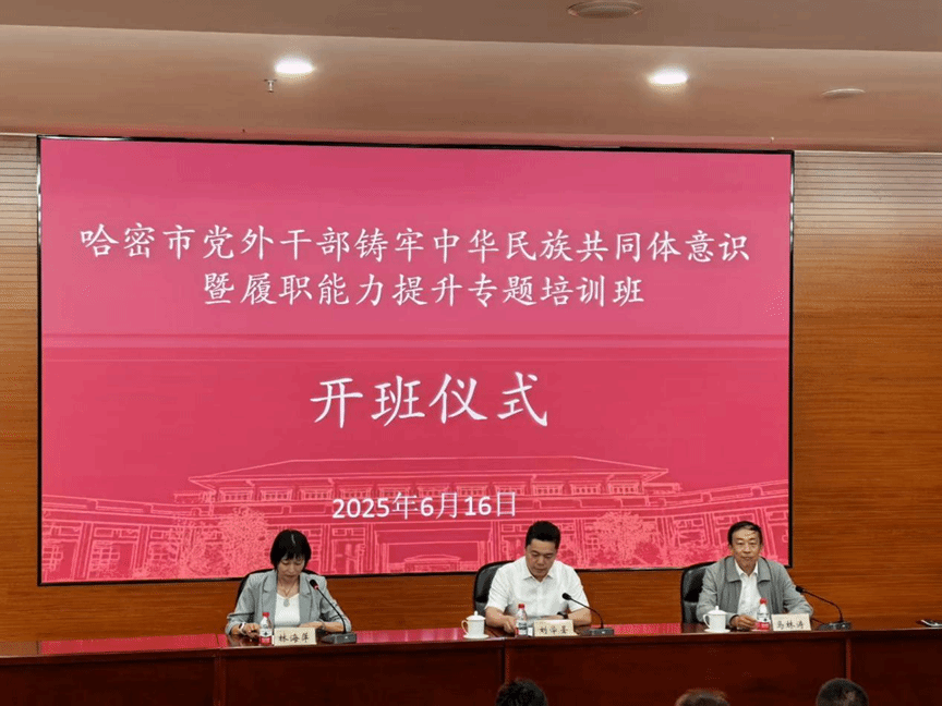 2025年6月15日至21日,“哈密市党外干部铸牢中华民族共同体意识暨履职能力提升培训班”在威廉希尔中国官网举办,学校党委常委、副校长马林涛出席开班仪式并致辞,哈密市委常委、统战部部长刘学圣作开班动员讲话。